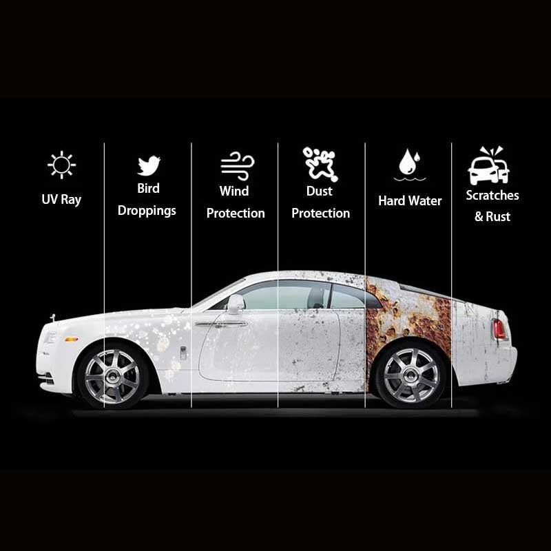 -PPF paint protection film: 8-year warranty, resistant to yellowing, corrosion, and scratching.